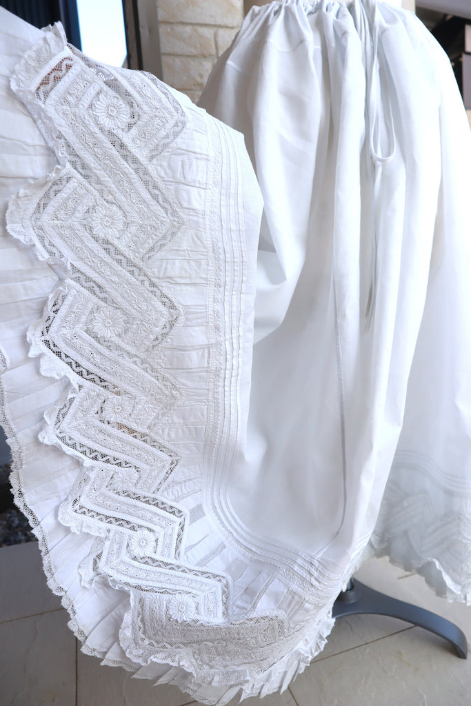 レースのインサートとプリーツ。