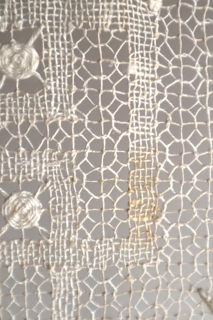 優れた状態。(わずかな薄いシミが少しと制作時に混じった濃色糸が2か所ございます。糸玉内部の色差、当時の糸事情の証です。画像をご確認ください。)