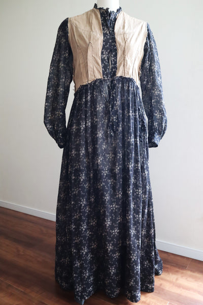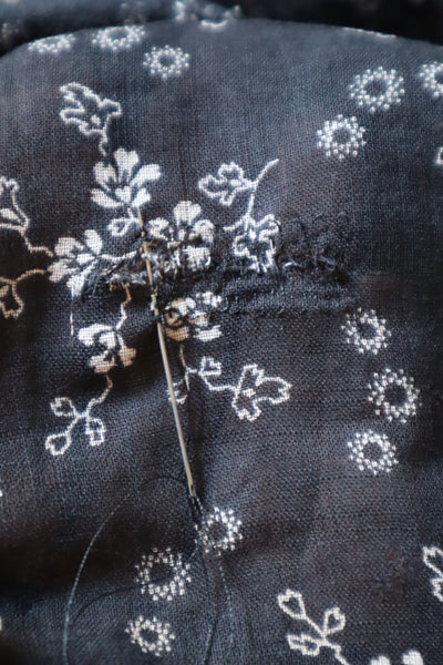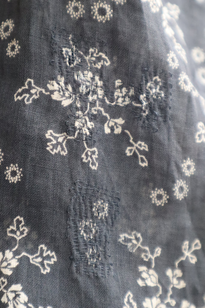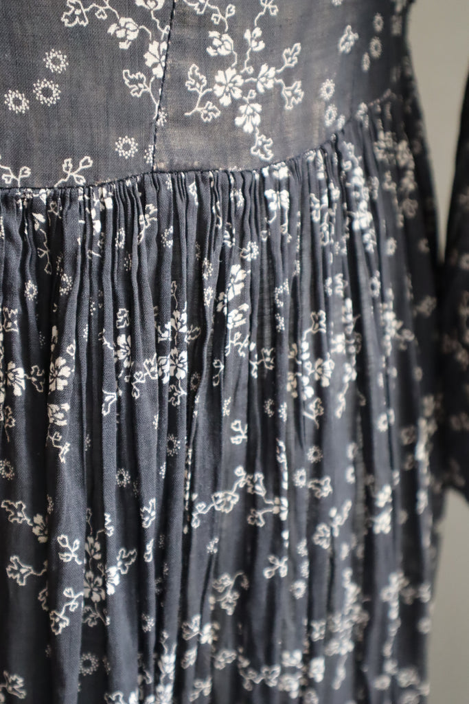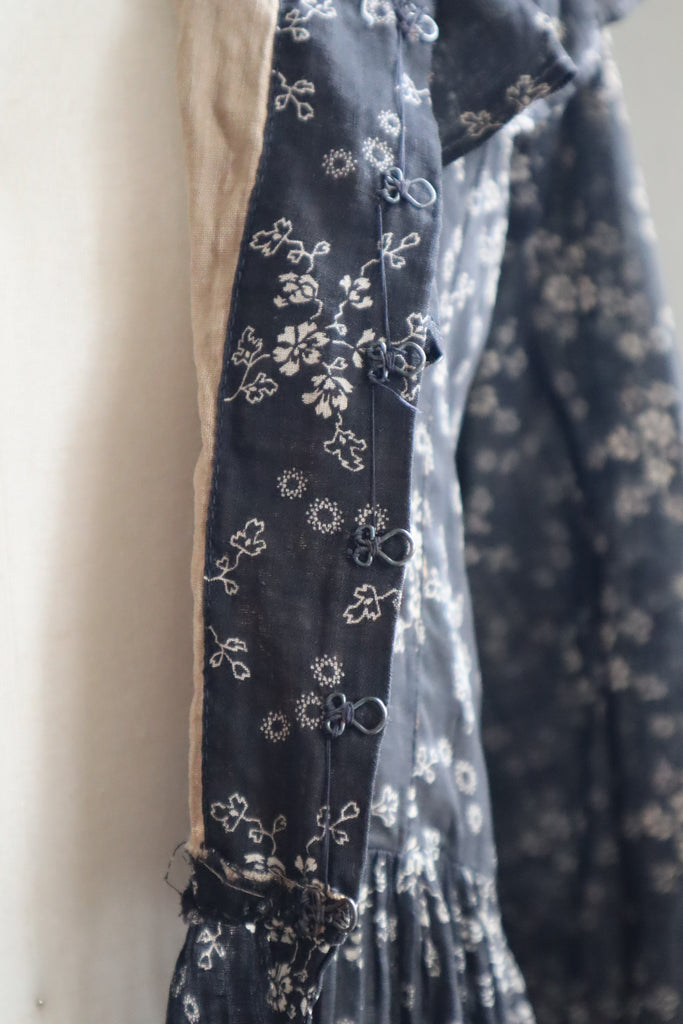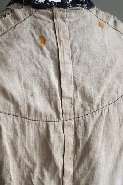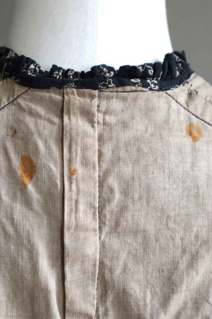 優れた状態。(アンティーク感はございます。ダメージや小穴があります。袖の生地が経年により少し弱くなっており見つけた裂けやすそうな部分は補強しています。その他私による修復が複数、両袖と袖口、裾、襟、身頃など。最後の方の写真に修理の様子などをまとめて載せています。ご確認くださいませ。生地が薄いものなので今後もお修理が必要になってくると思います。年代物とご理解くださいませ。ボディス裏地に経年によるシミなどありますが首の内側や脇下も綺麗な状態です。)