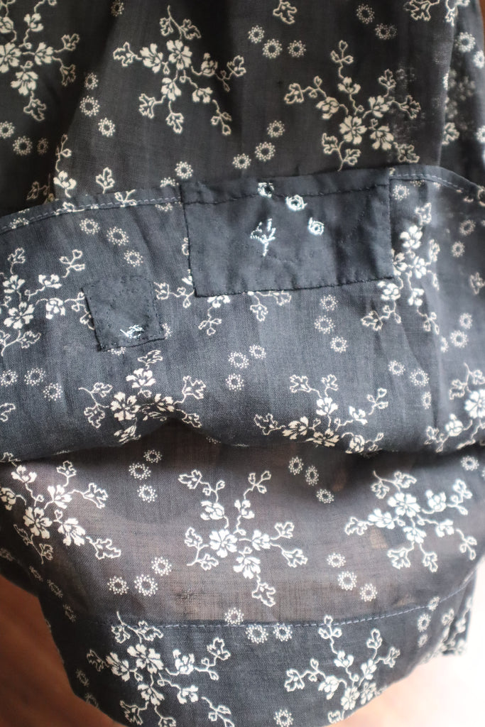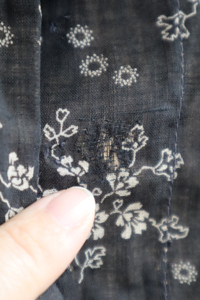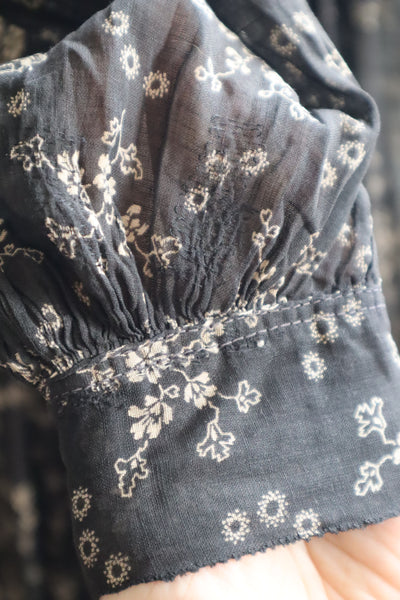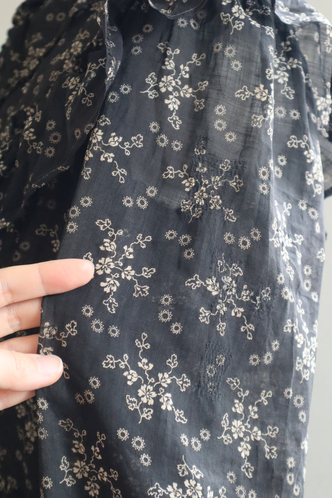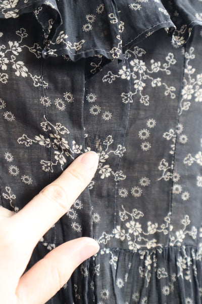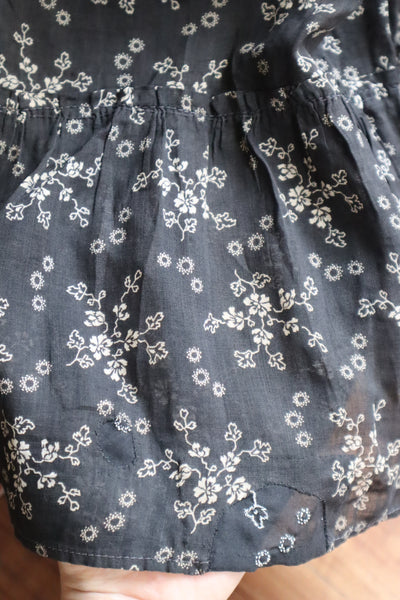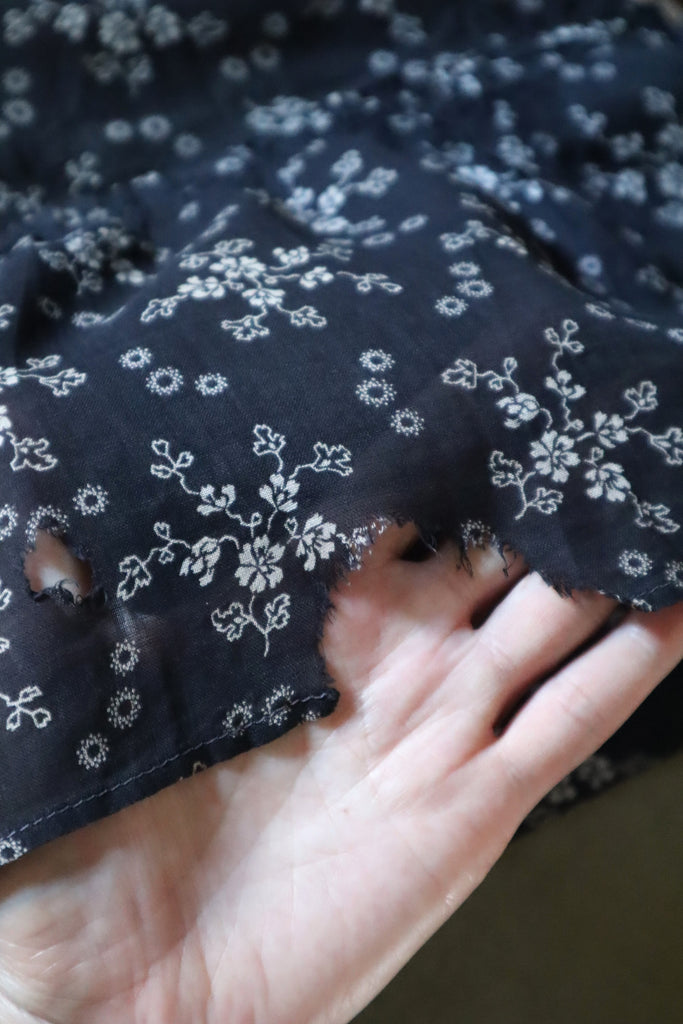ブラックのセミシアーコットンにホワイトの小花柄。とても素敵な生地。