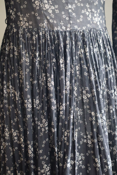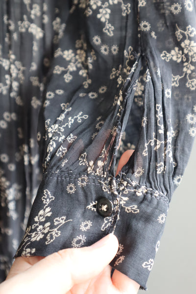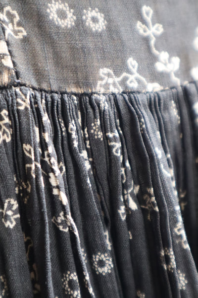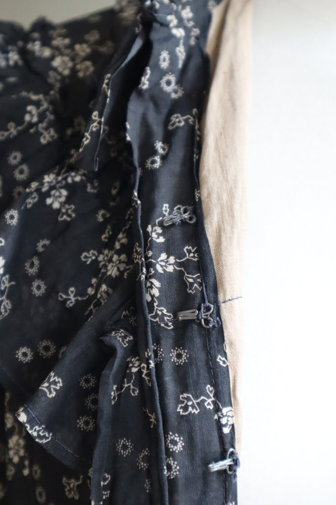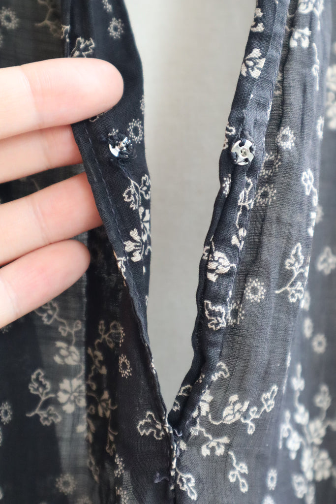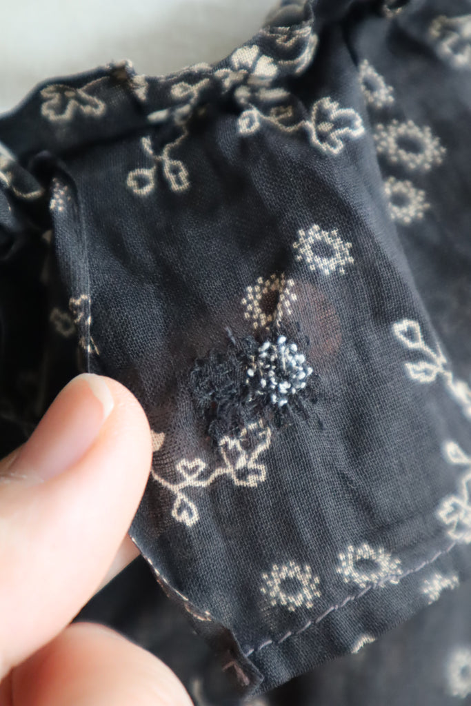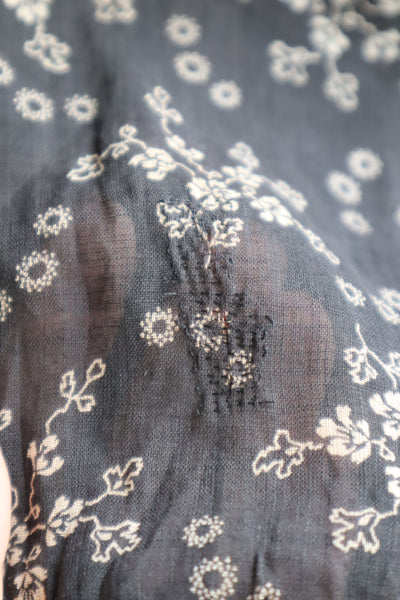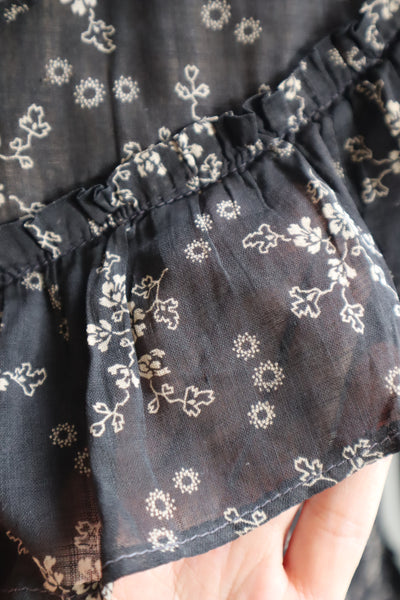 ブラックのセミシアーコットンにホワイトの小花柄。とても素敵な生地。