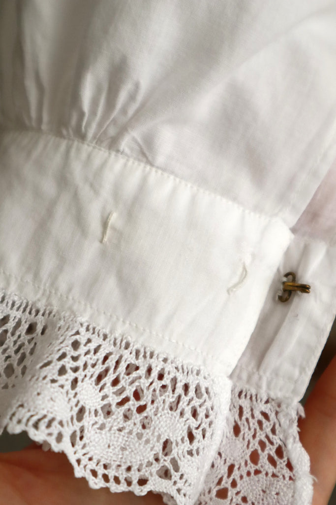 優れた状態。(アンティーク感はございます。右袖にシミ、一つの補修、首内側の縫い目に経年変色が見られますが、生地も白く しっかりとしており とても良い保存状態です。画像をご確認ください。)