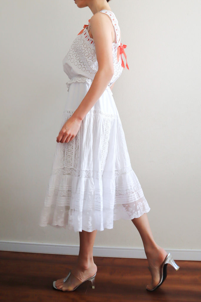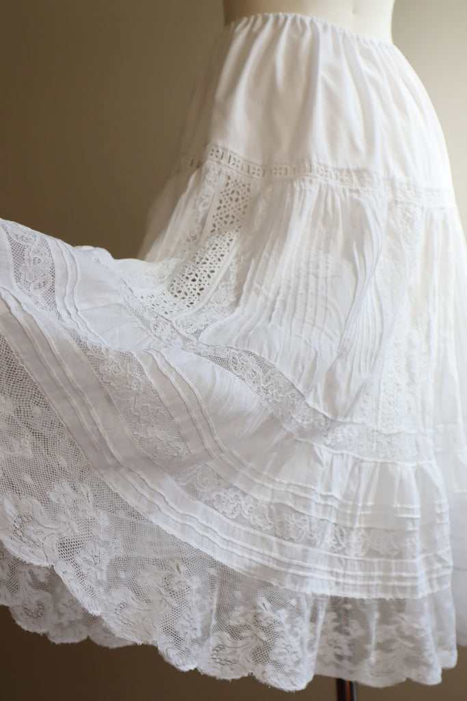 沢山の生地の分量と、幅広のレースが豪華なスカートです。