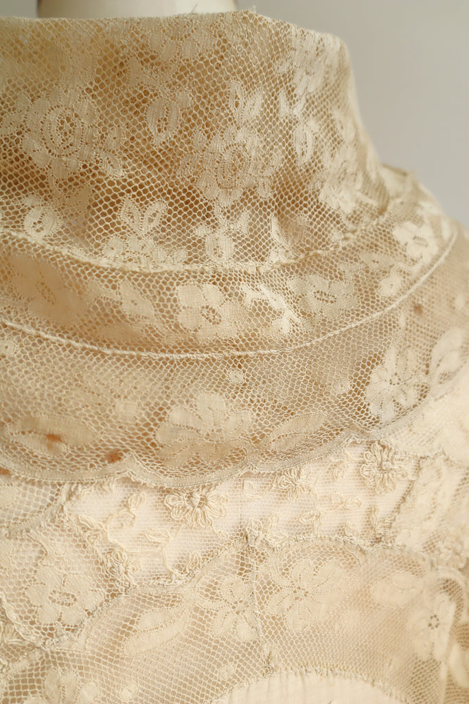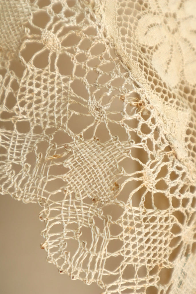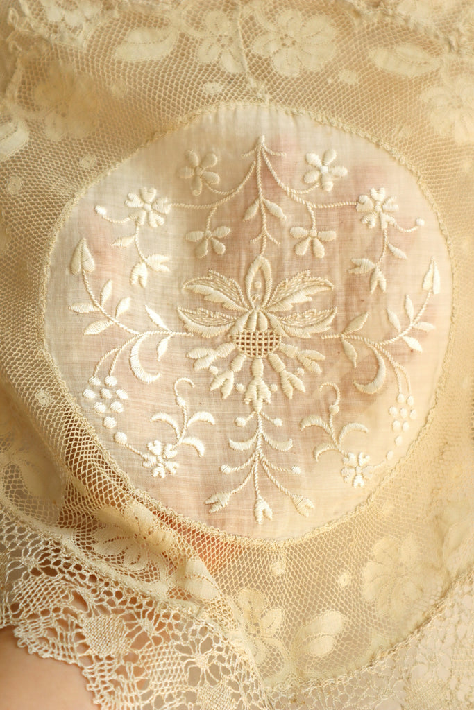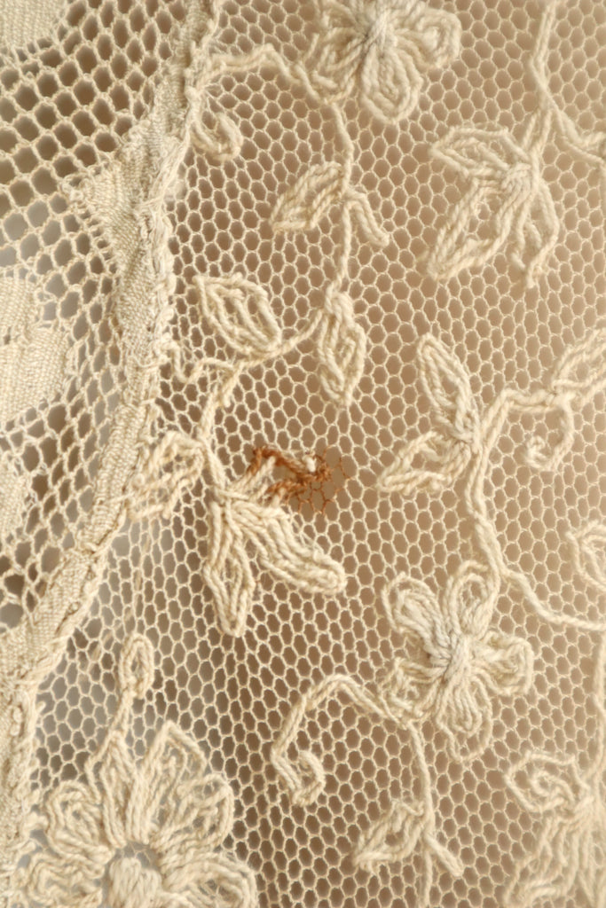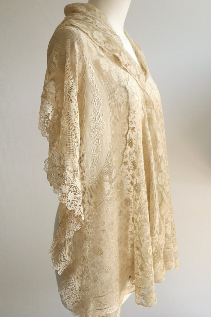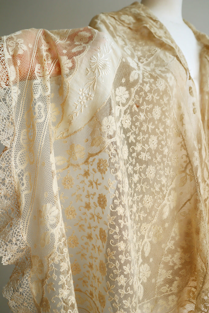 1910s–1920s Normandy Lace Appliqué Shawl with Hand Embroidery