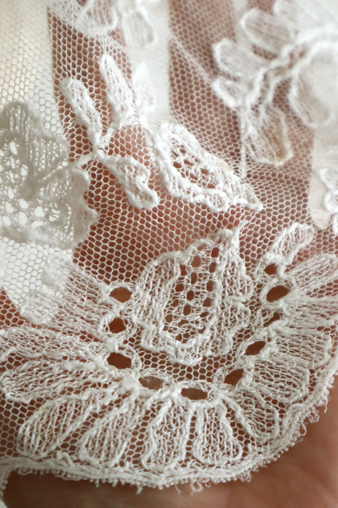 白いコットンチュールに美しい花の刺繍、