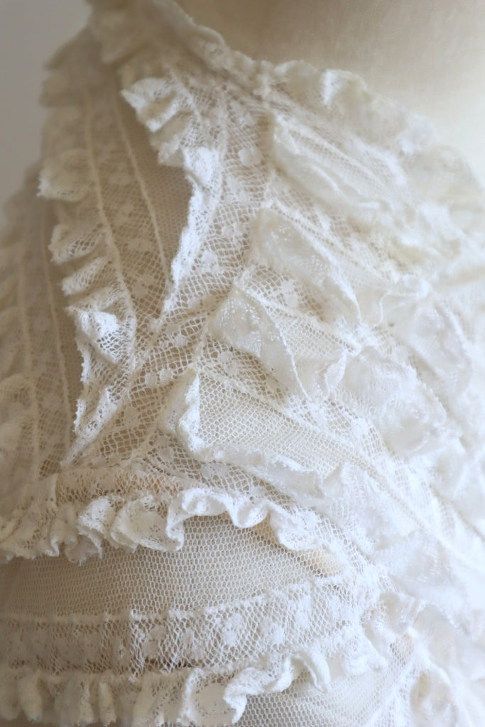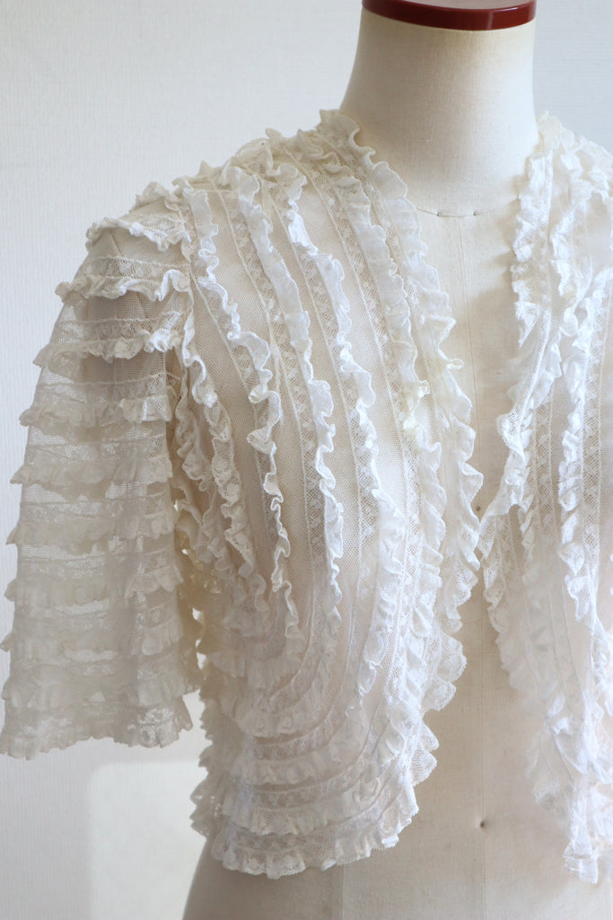優れた状態。(アンティーク感はございます。チュールに摩擦、フロントレースの黄変、背中の小穴は縦に縫い合わせ補修しました。画像をご確認ください。)