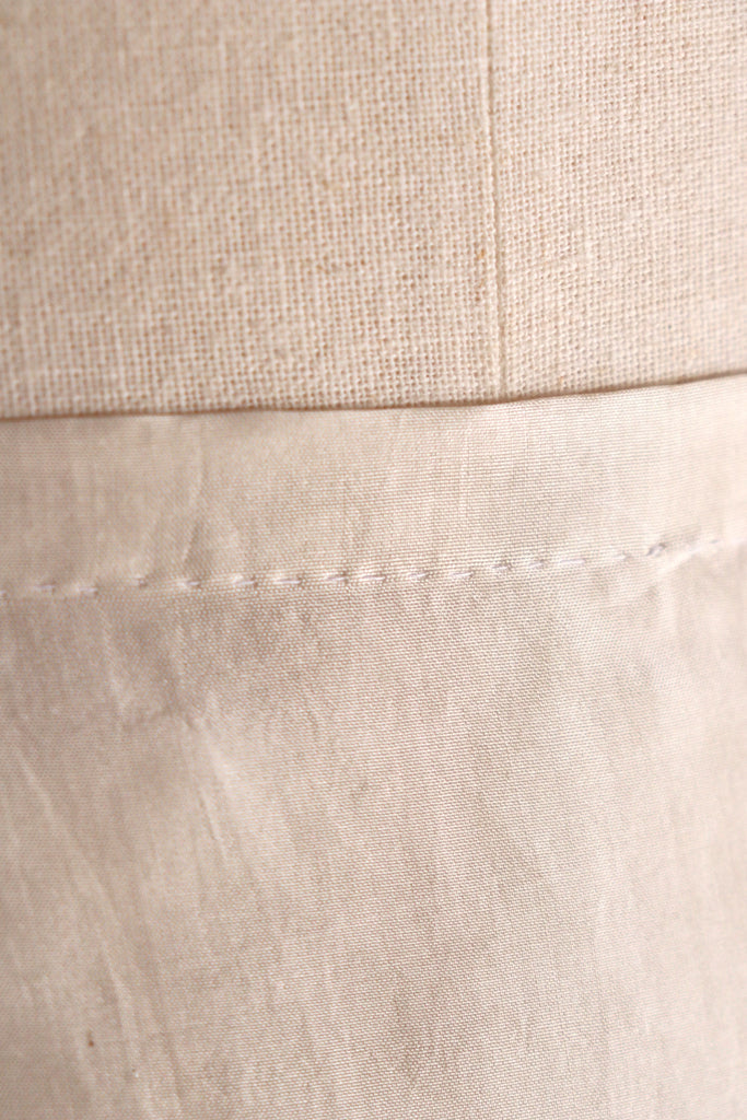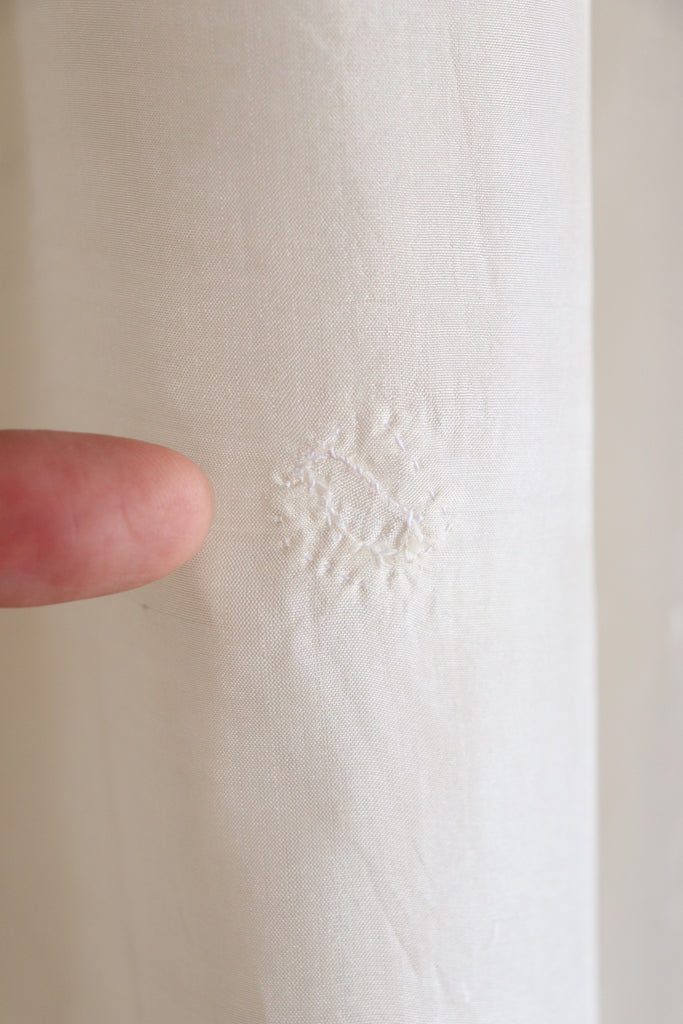 美しい手縫いの刺繍と縫製、コットンレースの裾。