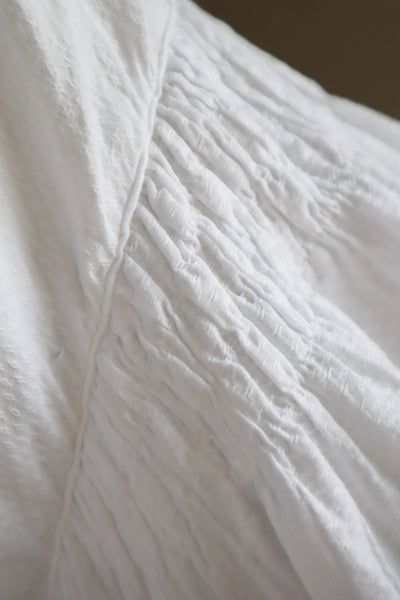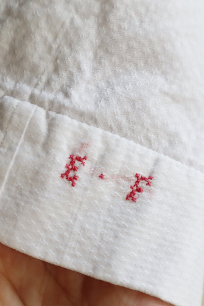 薄い薄いコットンガーゼの生地に綿糸で透かしの花とスカラップの縁取り。