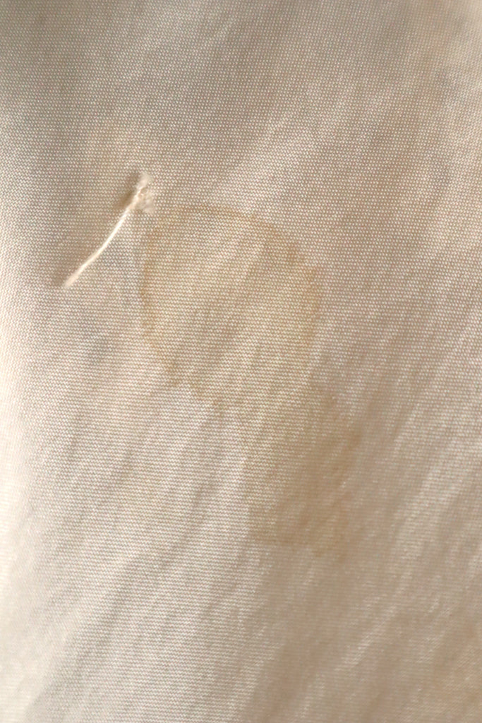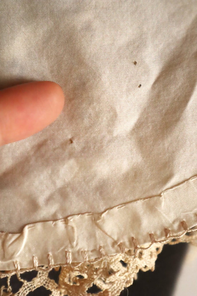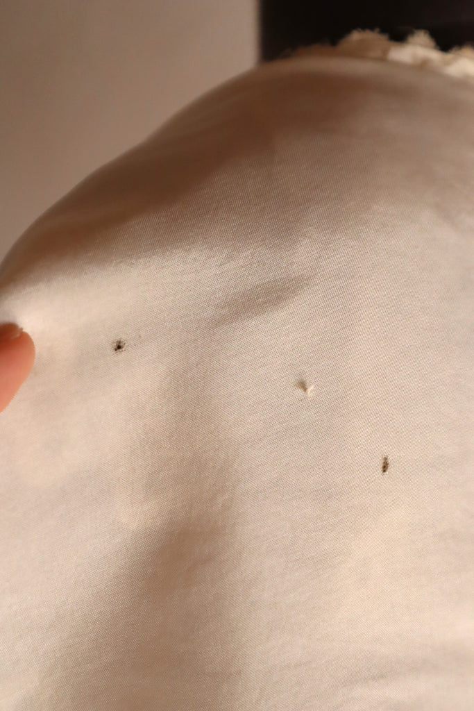 裏地シルク部分小穴やシミ、表地にもわずかなシミが見られます。