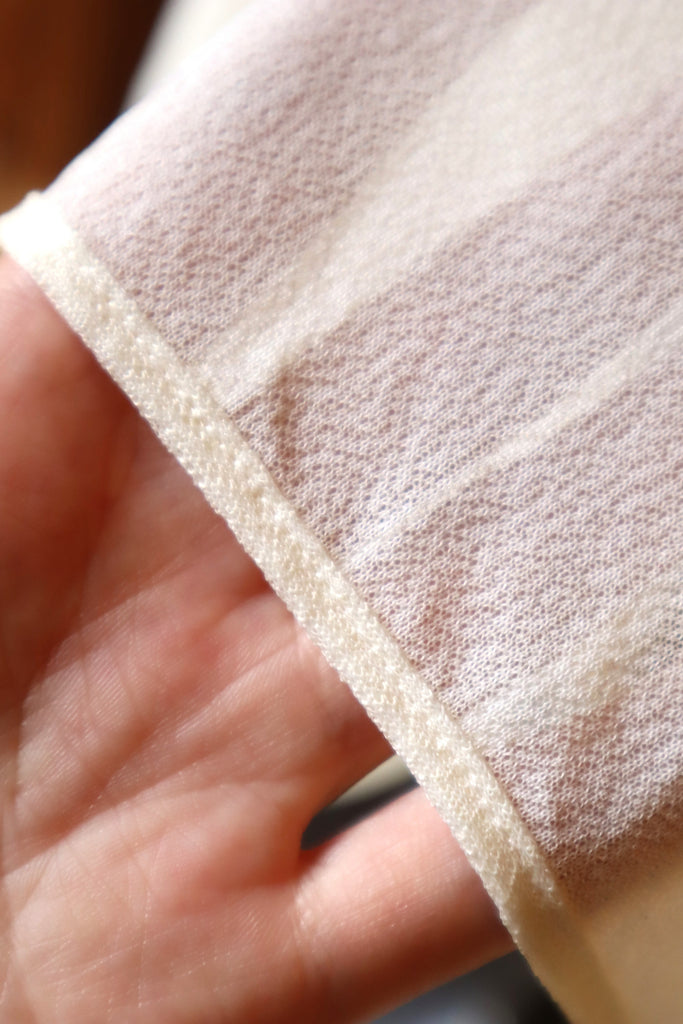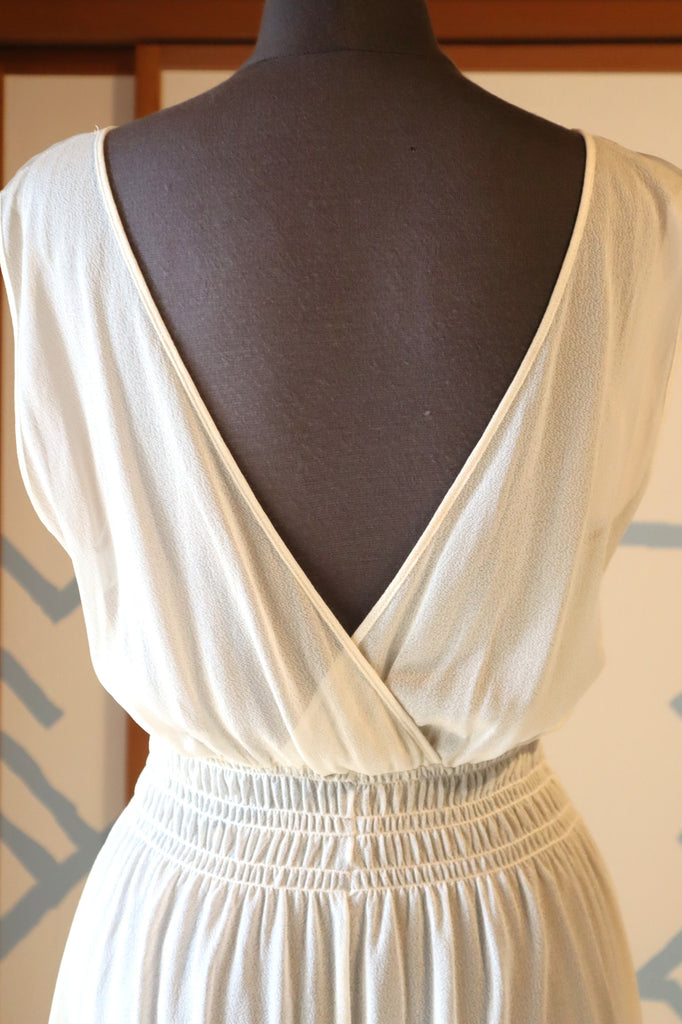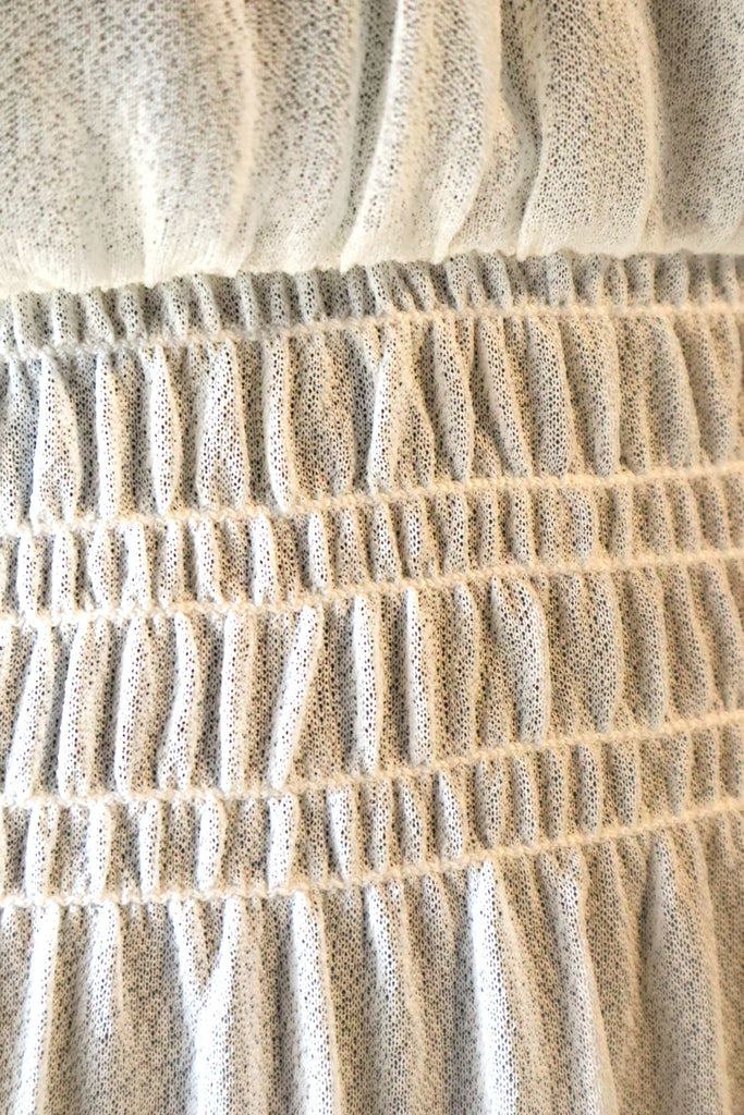 チュールのヨーク、ウエストはゴムでシャーリング。