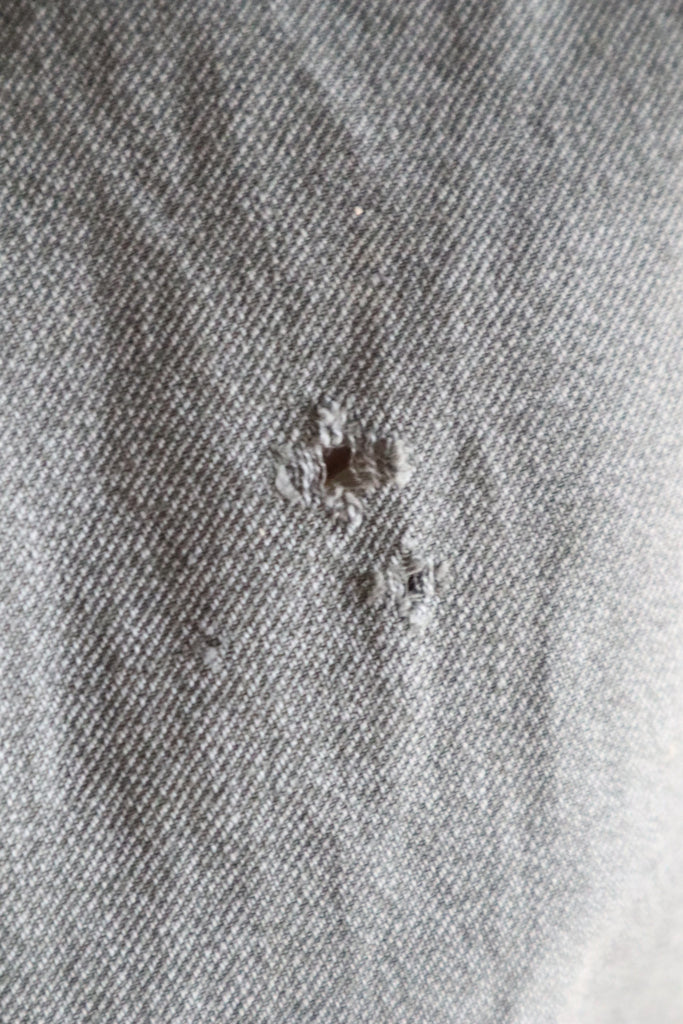 使い込まれた状態のため、汚れ(シミや首内側)、ペンキあと、色褪せ、ダメージ、使用者による経年のボタン交換がございます。