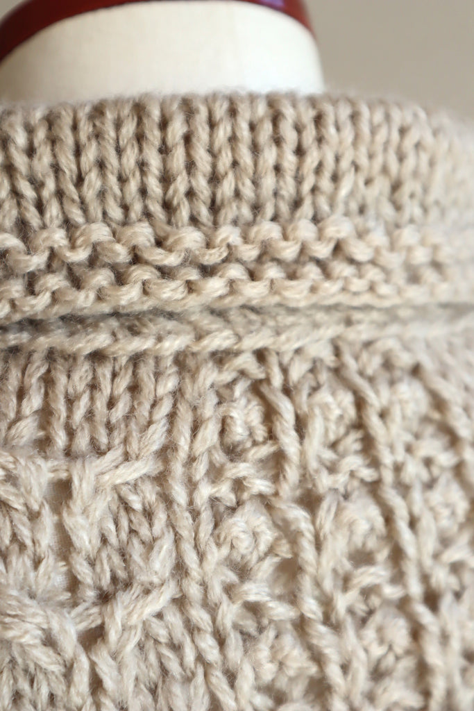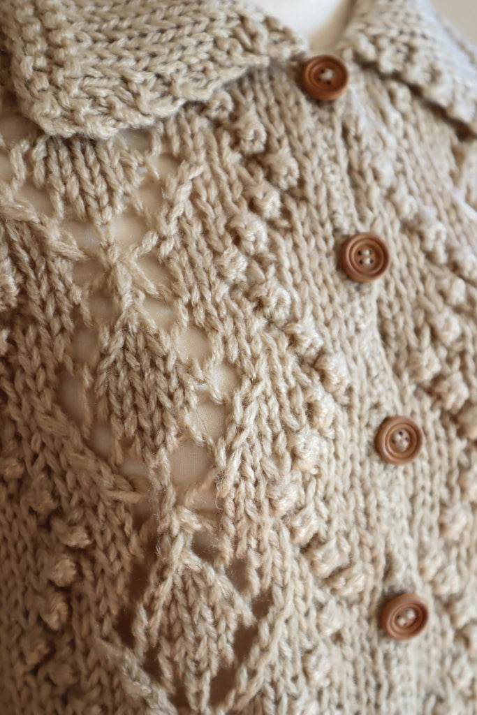 透かし編みと立体編み、ウエストは取り外しができる引き紐仕様。