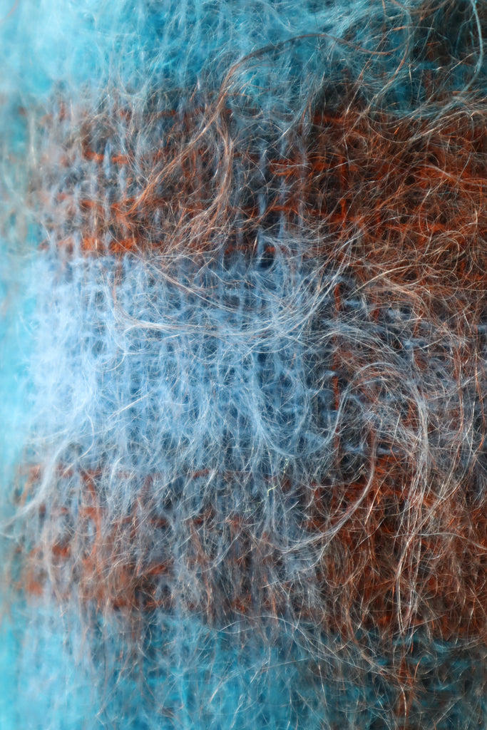 明るい綺麗なブルーの色合い、大胆なチェック柄。