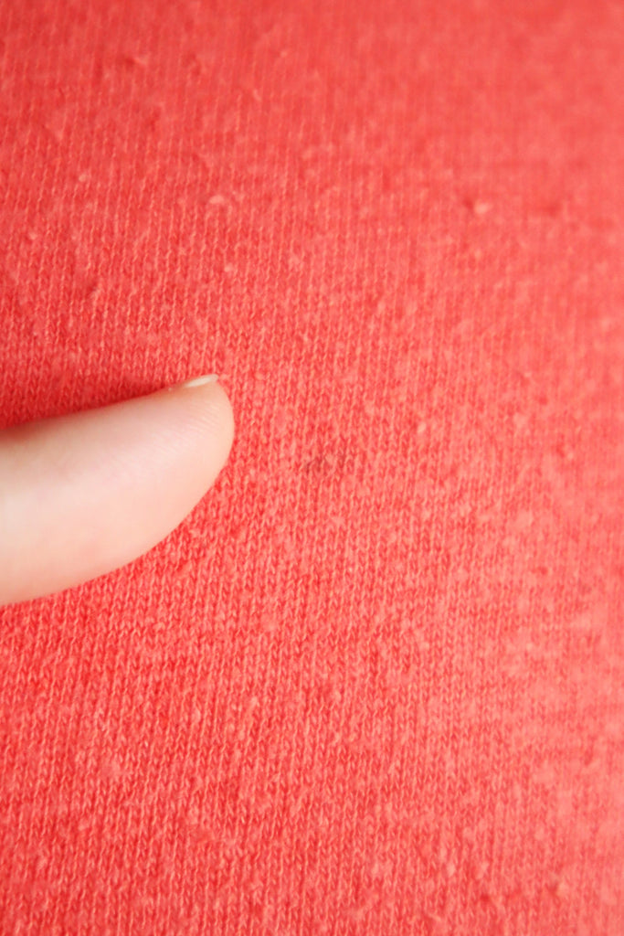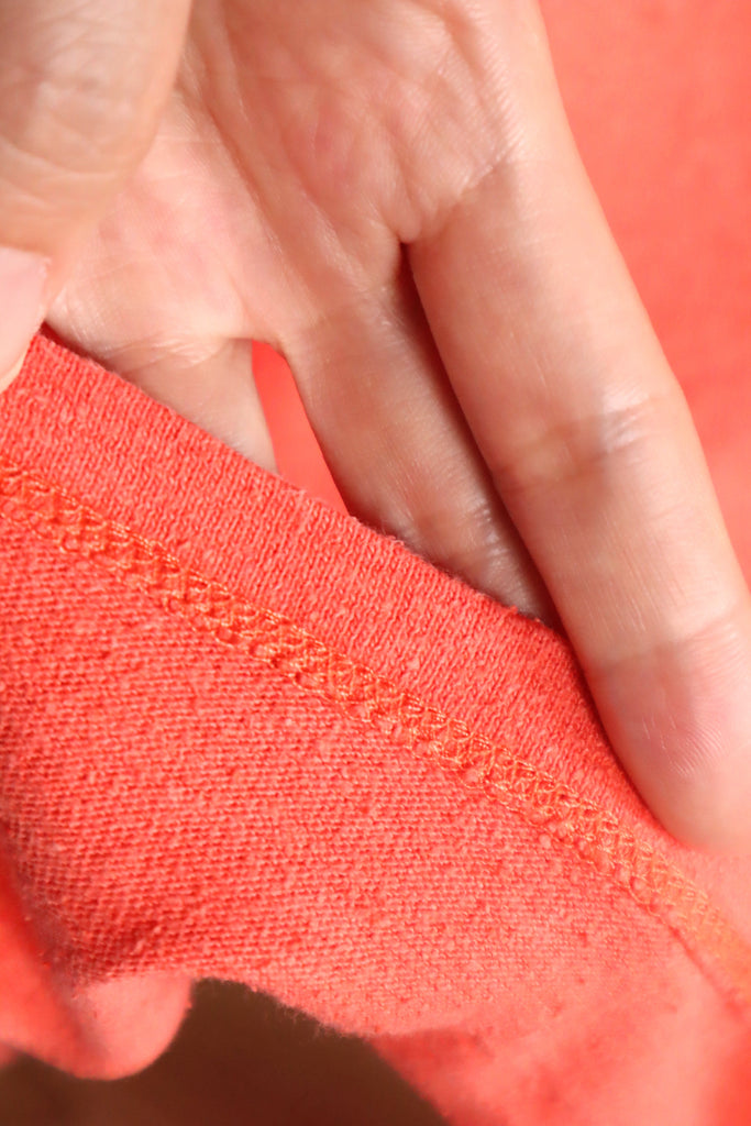 コーラル色のコットンニット生地。