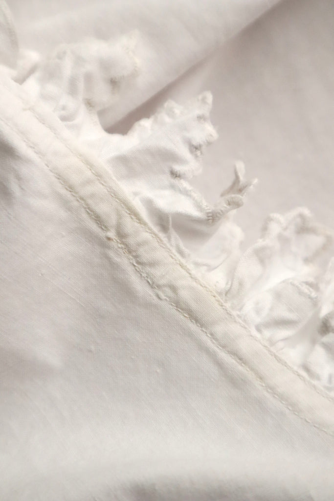 葉のようなギザギザとしたスカラップ刺繍が施されています。