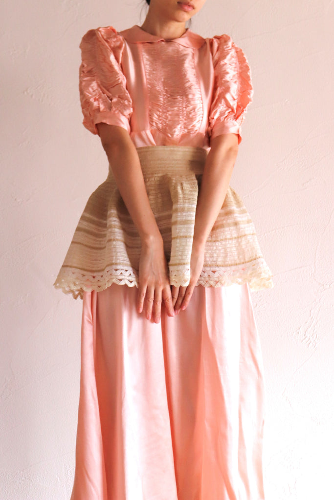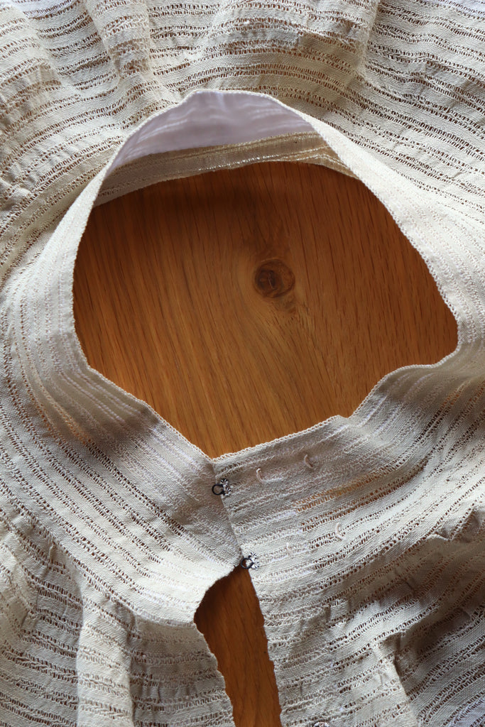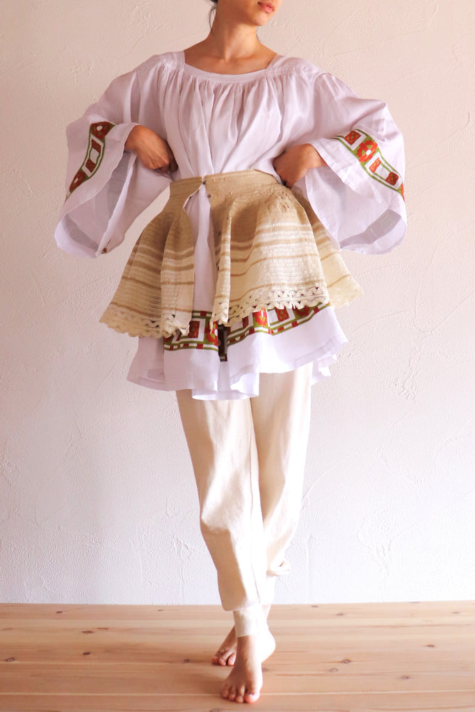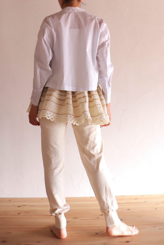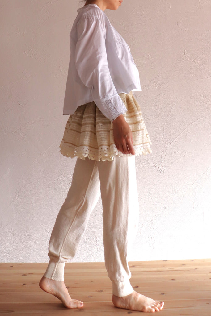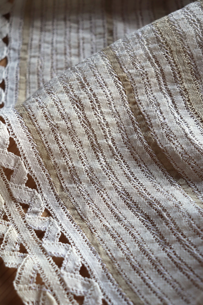 コットンリネンのレースを手縫いで繋げ丁寧に作りました。