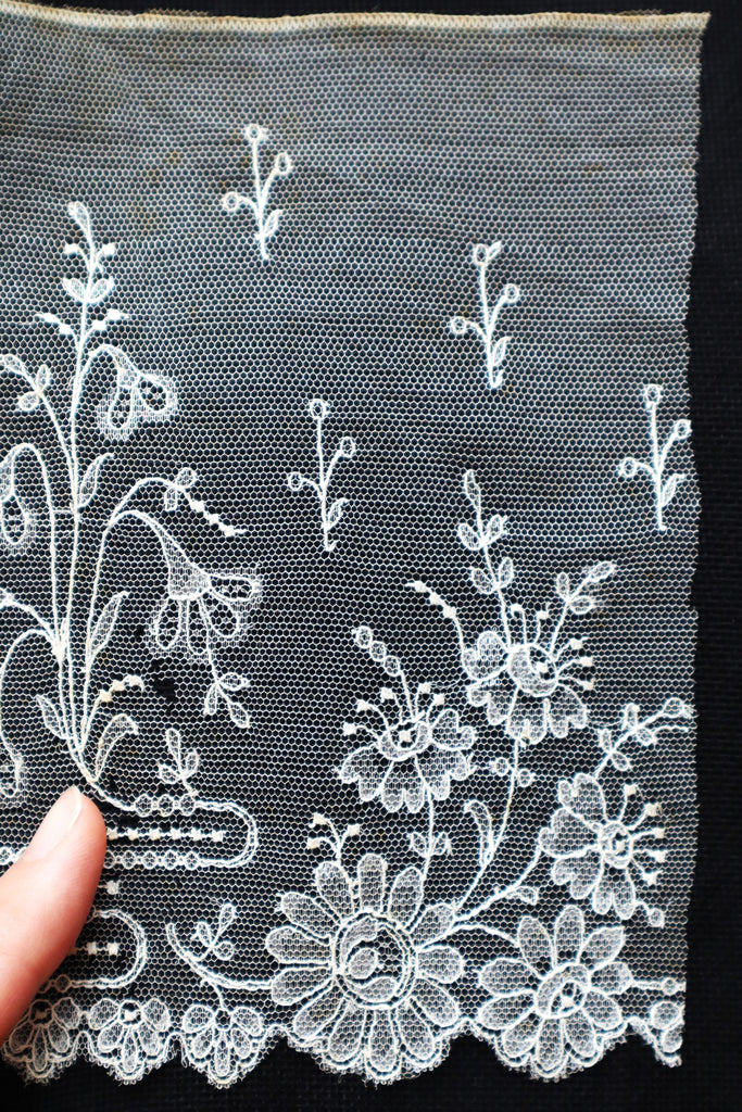 19世紀後半~1900年前後フランスの機械刺繍によるチュールレースボーダー。